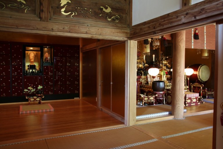 樹齢1200年を誇る天然記念物、諏訪神社の翁媼杉(じじばばすぎ)に隣接し、春は夏井千本桜など景観のどかな里山の風景な光明寺は、光明寺本堂内に永代納骨堂を整備しています。