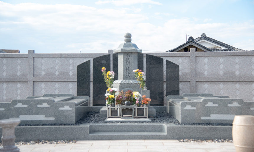 滋賀県湖南市に位置する真願寺の境内墓地は、お参りする方への配慮がなされた墓苑で、骨壷のままお納め、立った状態でのお参りが可能となっています。